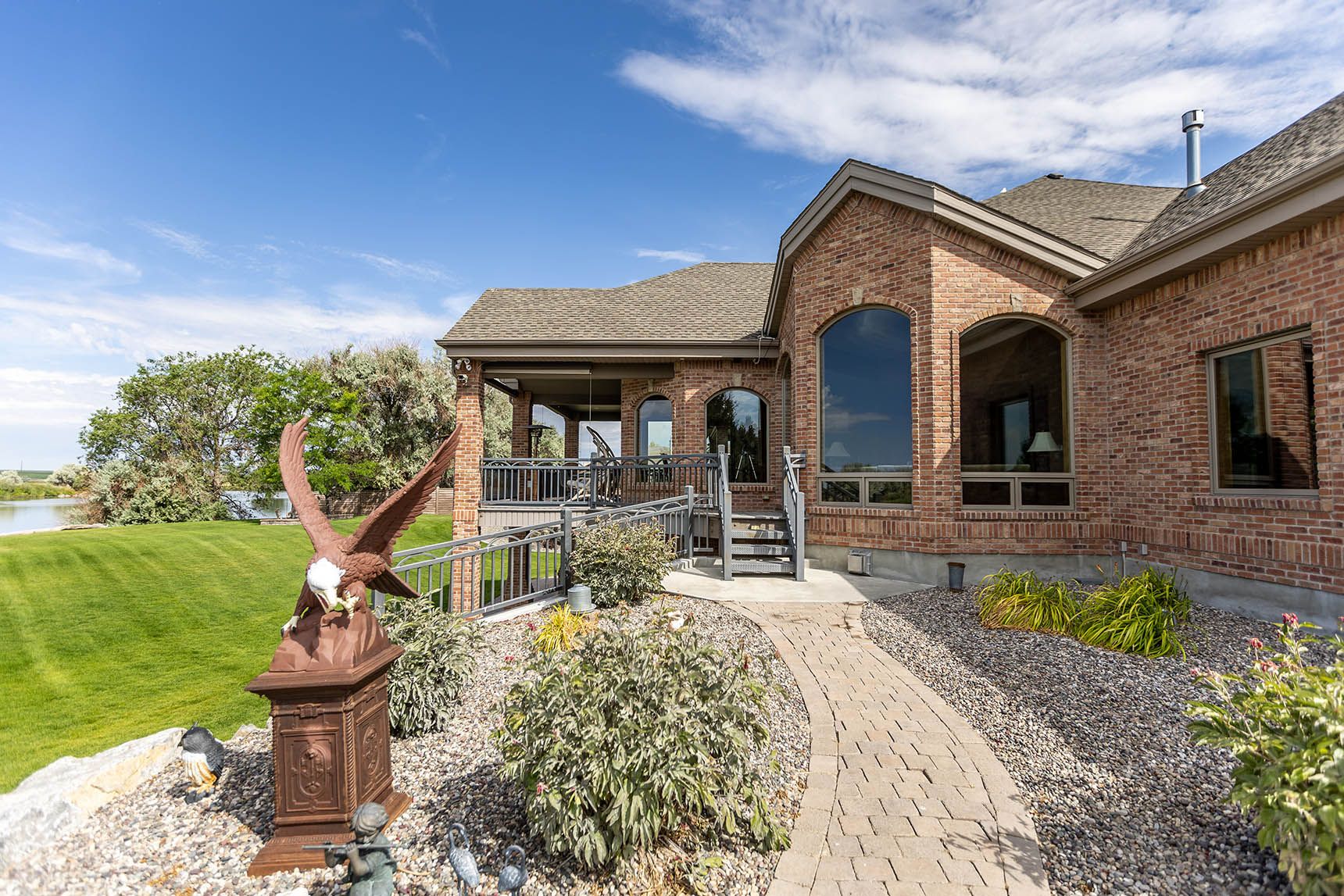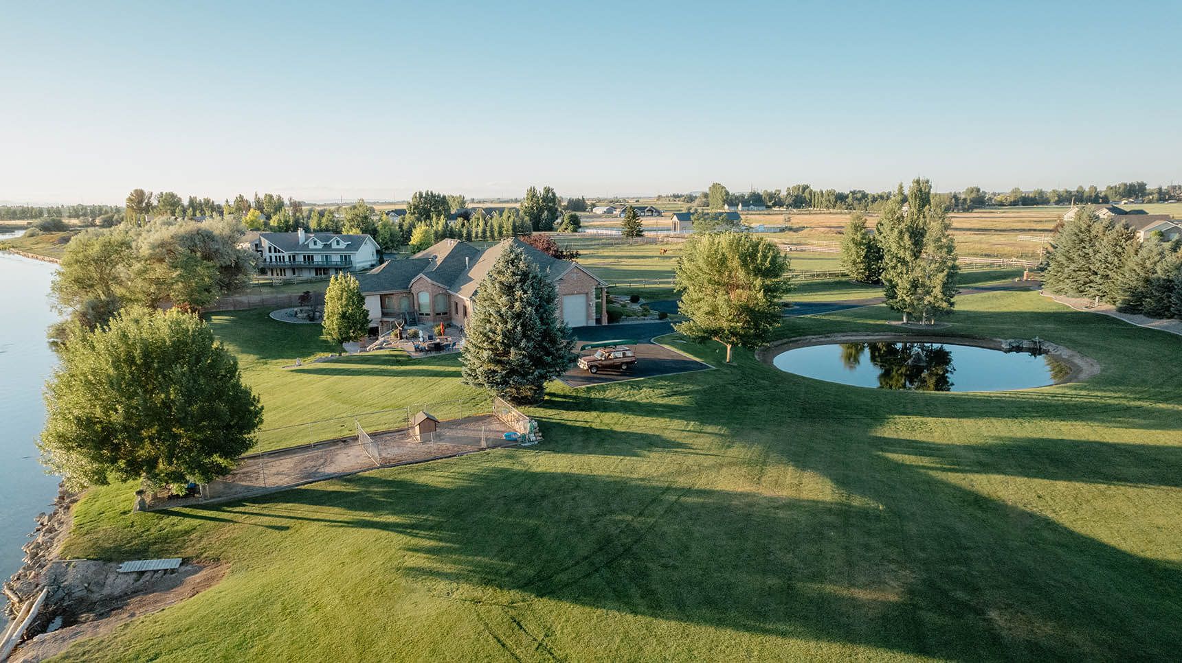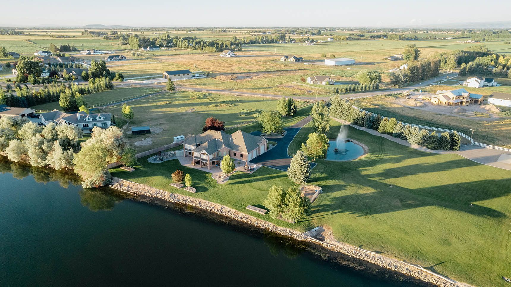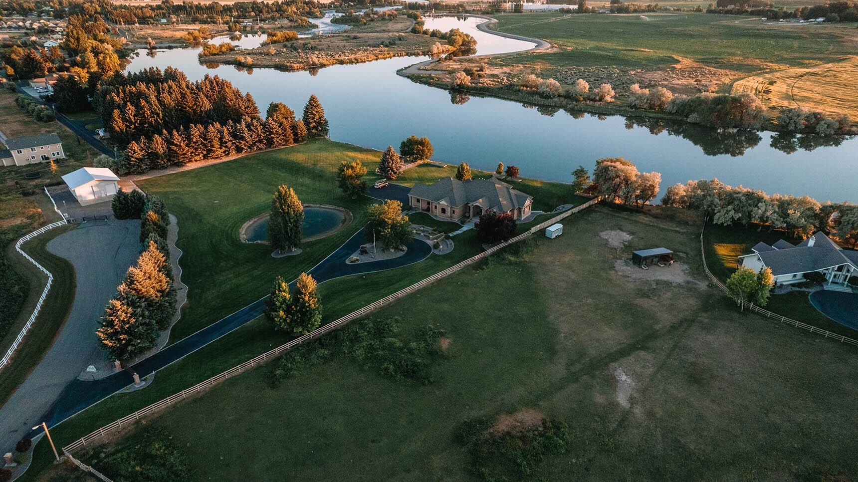 Truly one-of-a-kind custom designed home with an unbelievable 450ft of prime river frontage on the Snake River! This unbelievable home sits on over 4-acres of pristine manicured land which features a 2,000 sqft shop with a 14' door & a 12' door which comes fully insulated, heated & includes a hoist, a stunning home with a walkout basement, a theater room with a fireplace, breathtaking high-end features & design plus so much more. The exterior of the home is surrounded by gorgeous landscaping, a large pond, an open patio with a fire pit off the extended driveway which connects to the attached 3-stall tandem garage sprawling 1,994 sqft with epoxy floors & also features a balcony off the rear of the home with undisrupted views of the river which comes with sunshades. The interior of the home is highlighted by an open concept living area with a naturally lit living room with a gas fireplace, a beautiful dining area with views & a large kitchen with a 6 burner Viking stove, granite counters, & a custom barnwood island. The home also has a relaxing main floor master suite with a spa style bathroom including a clawfoot tub & a large walk-in shower. With all these features, stunning views & prime location what more could you ask for in a dream home!
