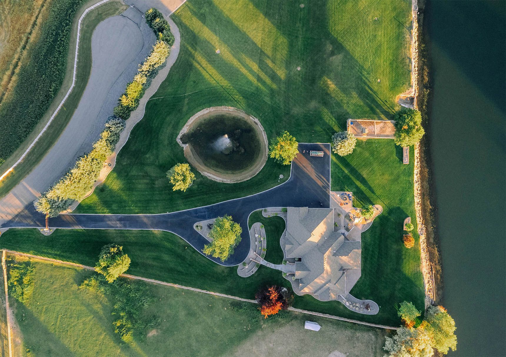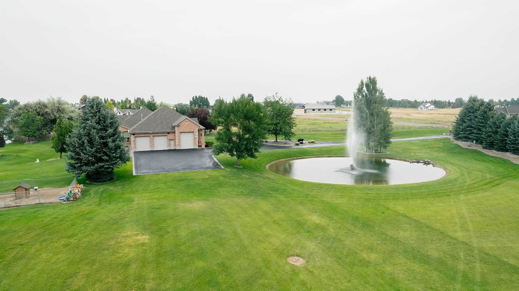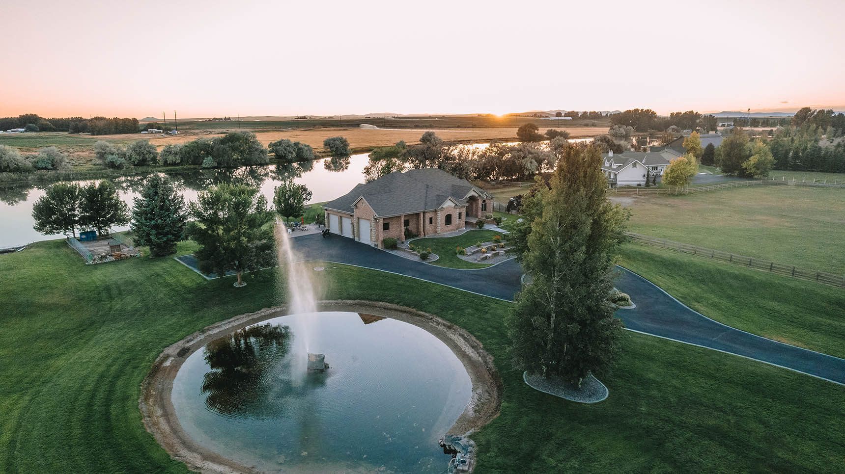 A 4+ acre property that features immaculate landscaping, a pond, a fire pit, and lots of areas to lounge and take in the breathtaking views