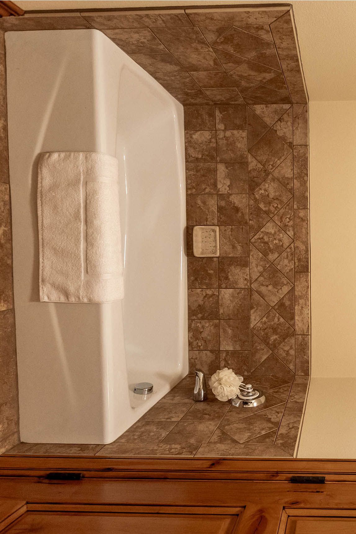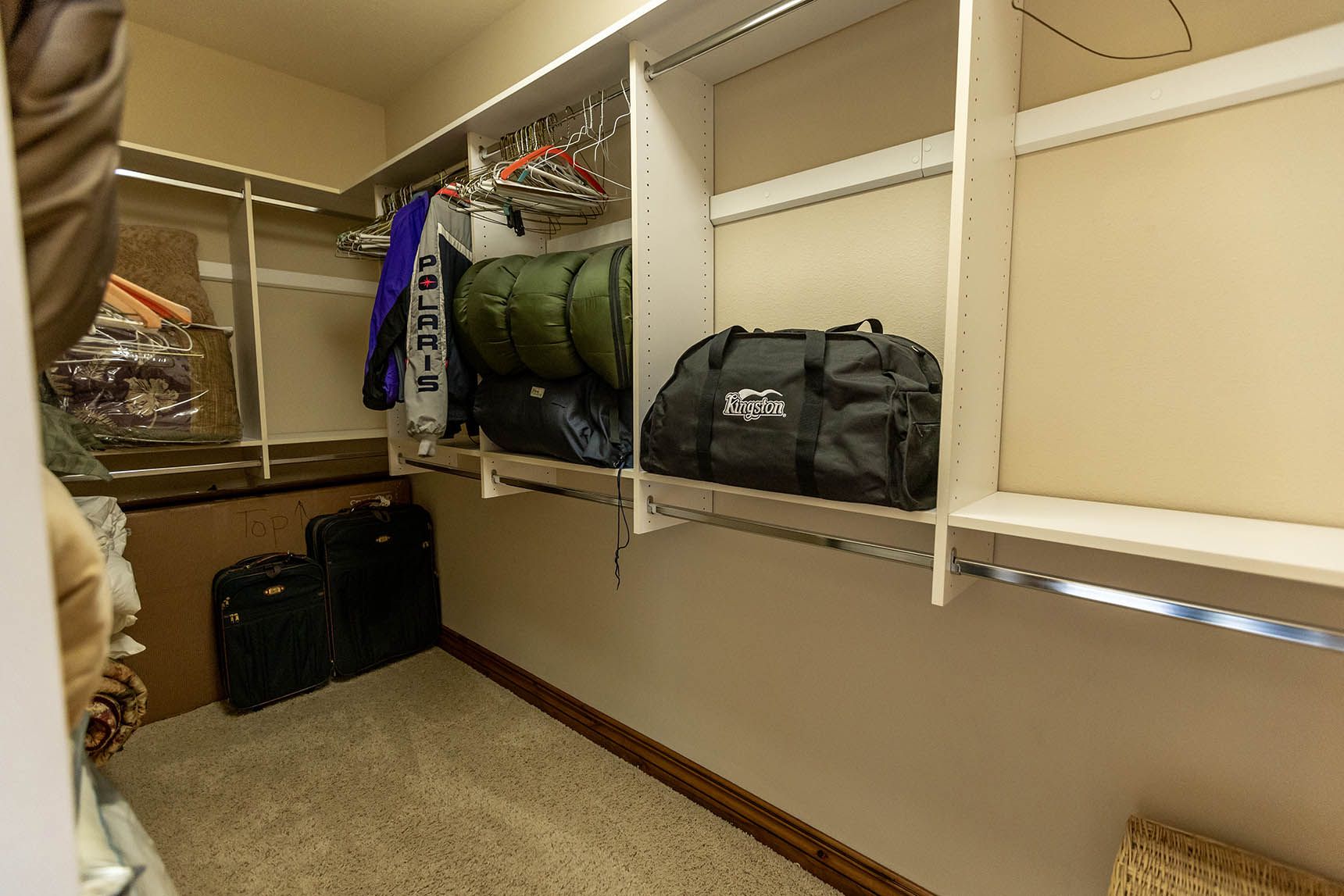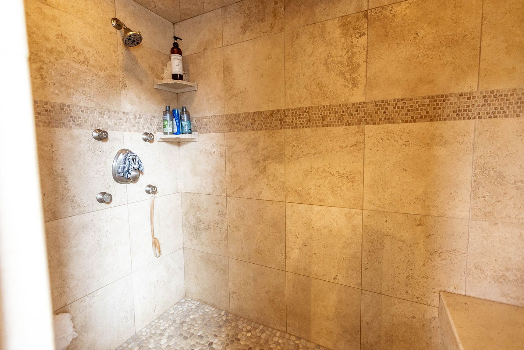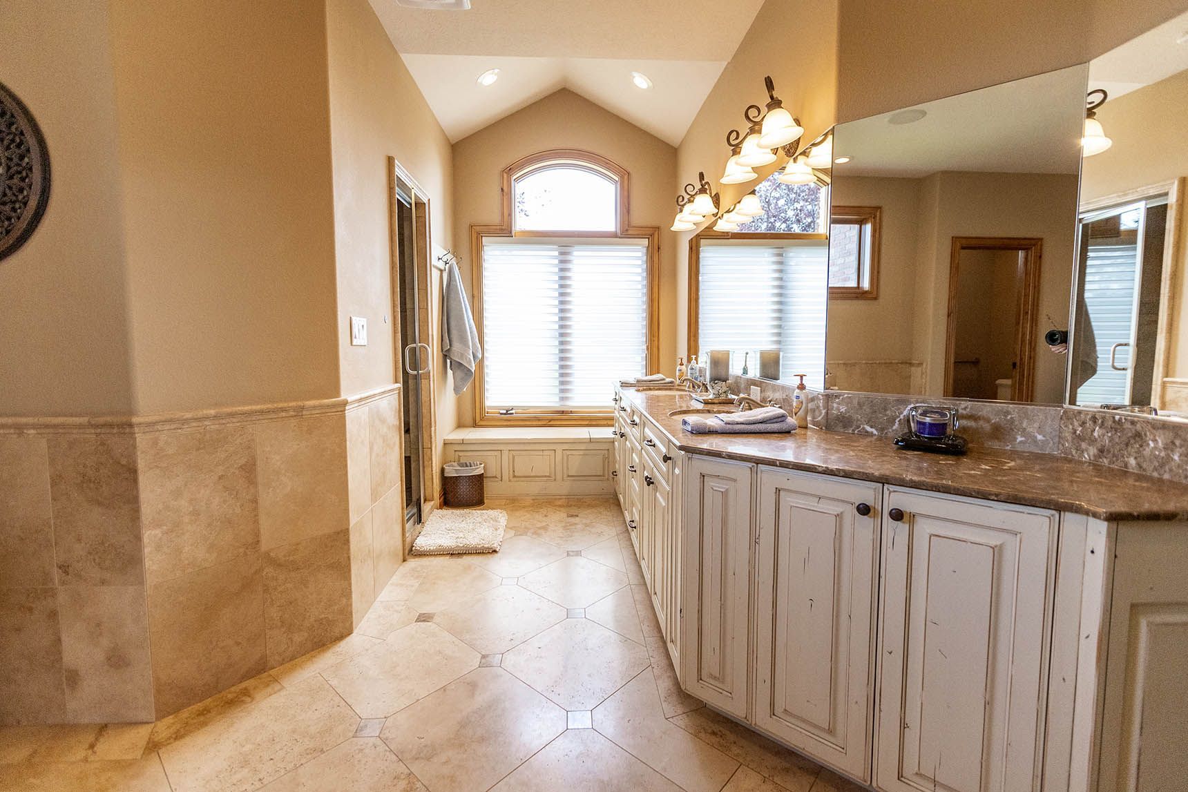 A large master suite with a spa-like bathroom including a clawfoot tub and large walk-in-shower